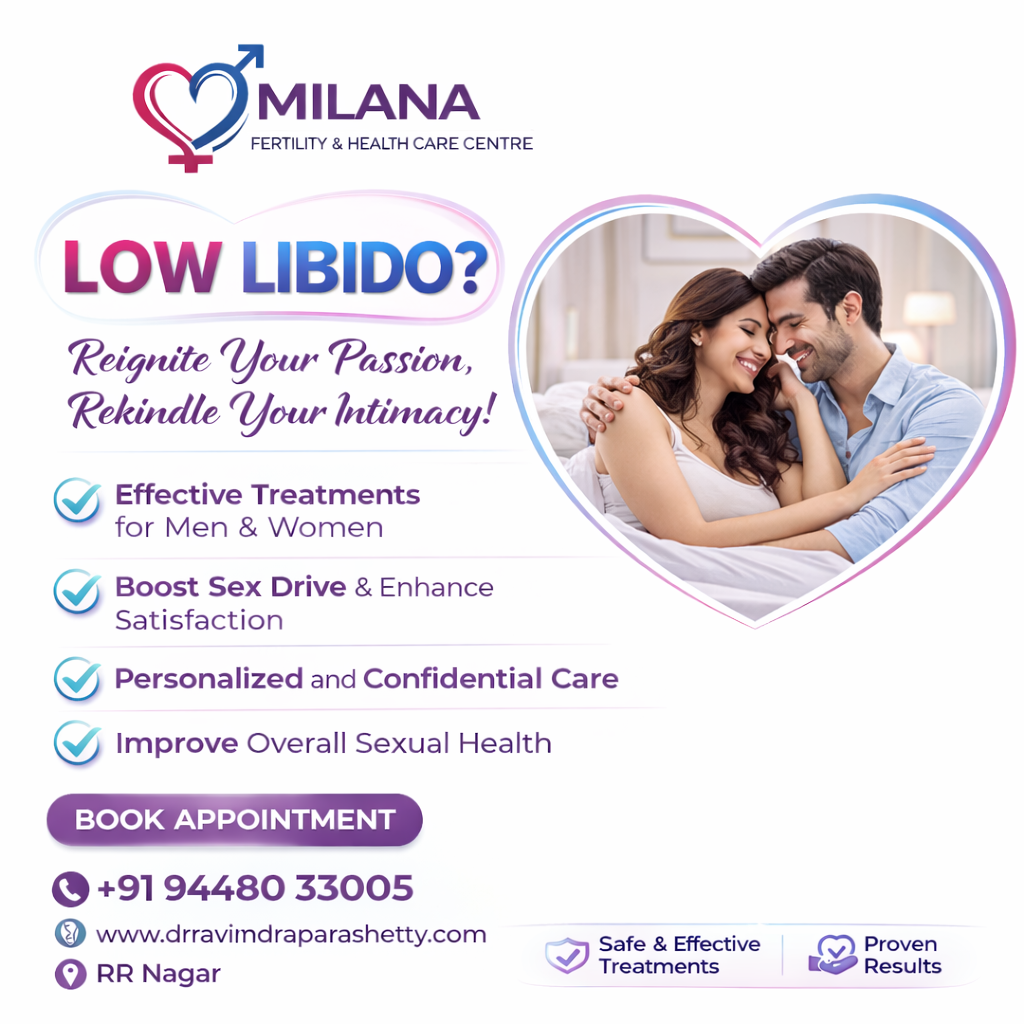 Low libido, or decreased sexual desire, is a condition that can affect individuals of all ages and backgrounds. It is often influenced by a combination of physical health, emotional well-being, and lifestyle habits. While occasional fluctuations in desire are normal, persistent low libido may require professional attention. At Milana Fertility & Health Care Centre in Bangalore, we offer structured and confidential support for individuals and couples seeking effective low libido treatment in RR Nagar and surrounding locations.